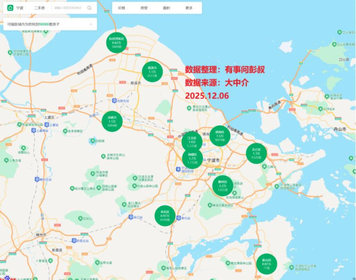 2025年1月到12月里面,宁波楼市的多个区域房价还是继续下跌了。